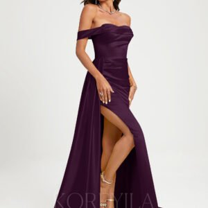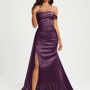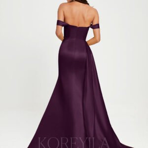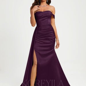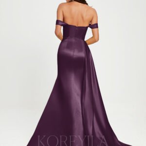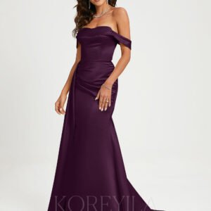 Trumpet/Mermaid Off the Shoulder Sweep Train Satin Prom Dresses