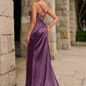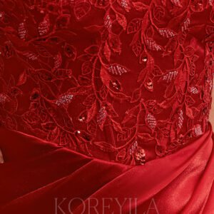 Be the first to review “Lace Up Back Sweetheart Leaf Corset Ruched Satin Mermaid Maxi Dress With Sequins Slit” Cancel reply